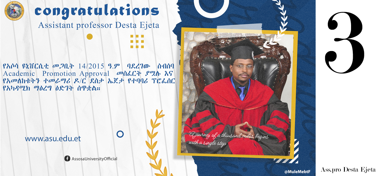 Assosa University is one of the higher education institutions and universities in Ethiopia. It is located in Assosa Ethiopia.I work in graphic design at the university. In addition, I also do other related works.